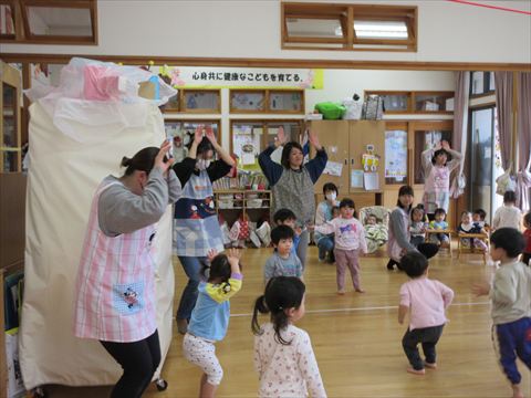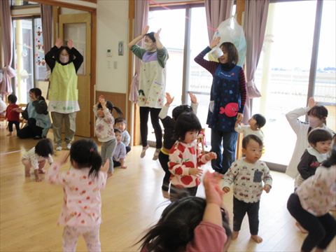 みんな、ほのかお姉さんをしっかり見て真似しています。