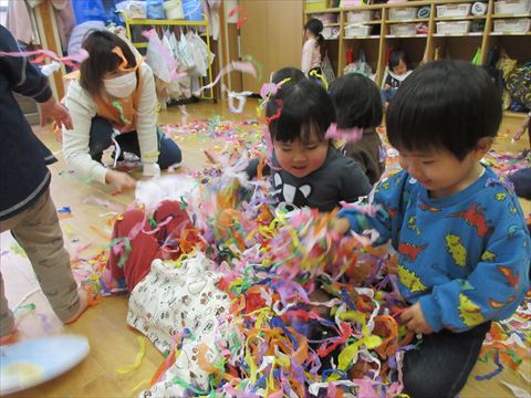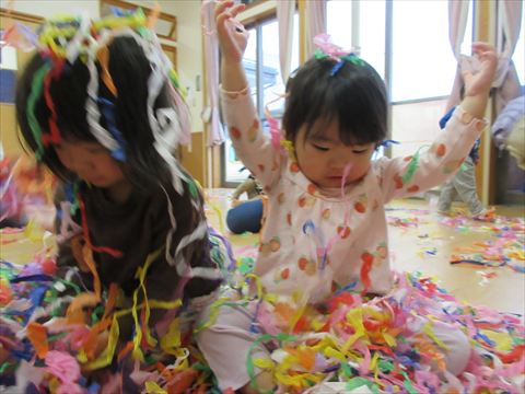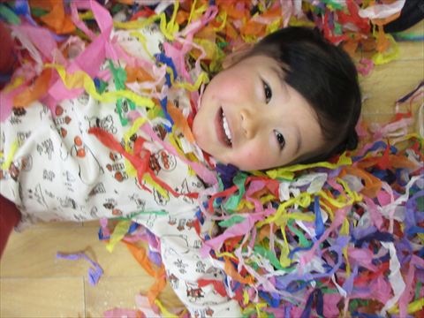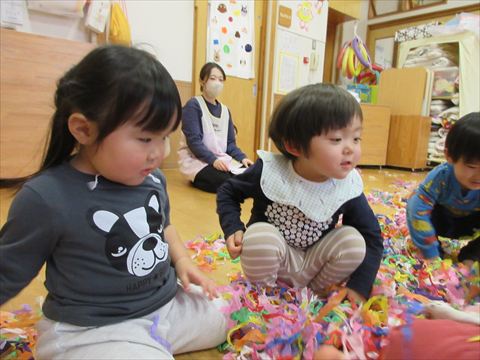 うさぎ組さんは、きれいな【花紙】で遊びましたよ。