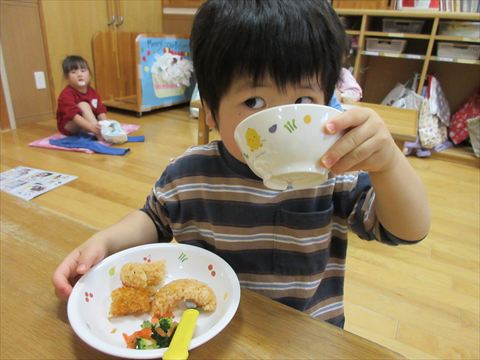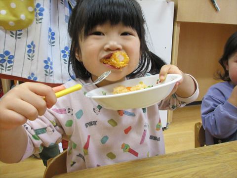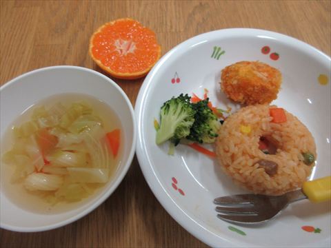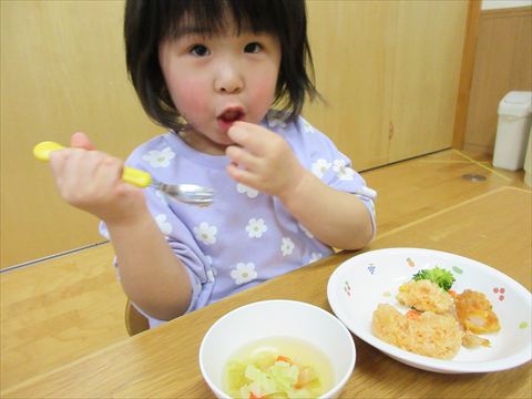 今日のお誕生会メニューは、【チキンライス&エビフライ🍤】🍽️