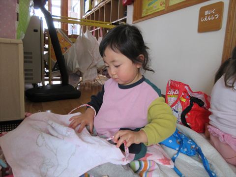 ぱんだ組さん、自分の好きな遊びを楽しんでいます。