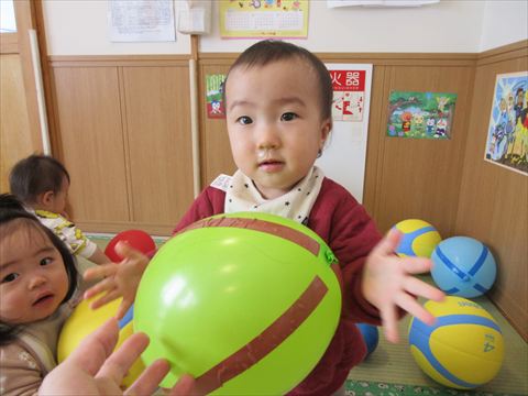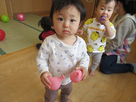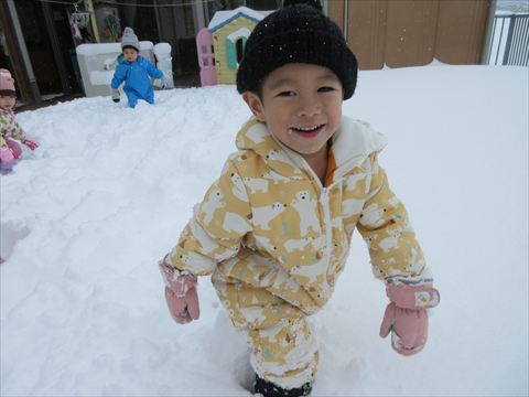 ぱんだ組さん、晴れ間をみて園庭に飛び出しました!!
