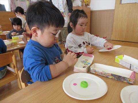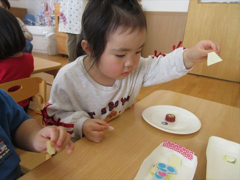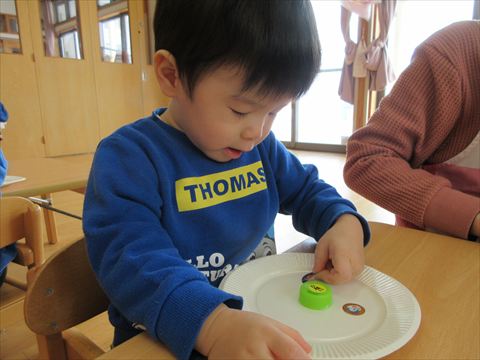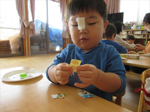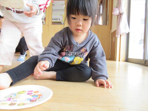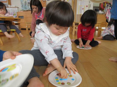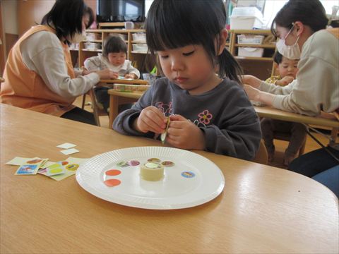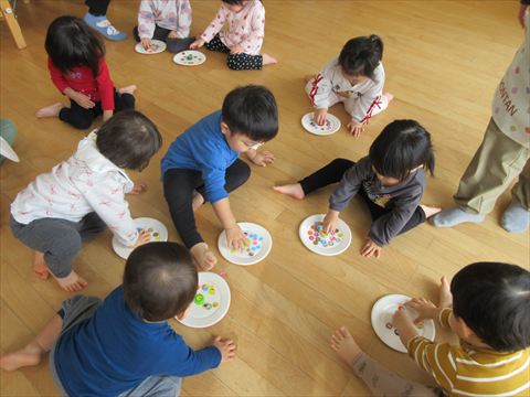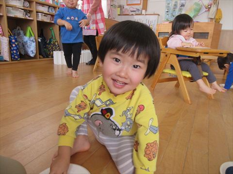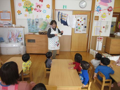 うさぎ組さんは、先生の方を見て話を聞いています。
