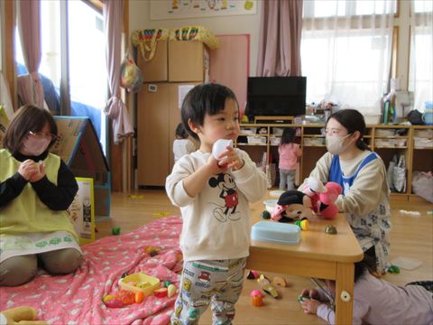 2026.01.29 今日のかめら(^^♪ ひよこ組さん、レゴブロックで遊んでいます。 穏やかな時が流れています。 外は、雪がいっぱい~😊 うさぎ組さんは、ままごと遊び♬ 寒い日は、やっぱり鍋ものですよね。 ぱんだ組さんは、糸通し&ぽぽちゃん(。・ω・。)ノ♡ じっくり好きな遊びをしました。 粘土遊びもしました。 雪がしんしんと静かに降っています。 晴れたら外で雪あそびしたいですね~⛄ 節分までもう少し、寒さももう少し・・・ 頑張りましょう(^▽^)/ 【園内感染情報】 ノロウィルス感染症 11名