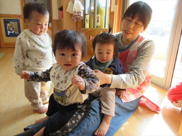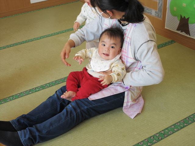 担任の膝の上に座って