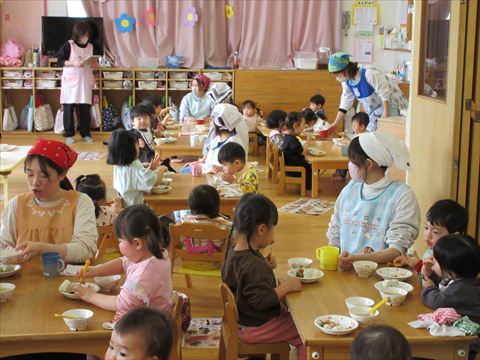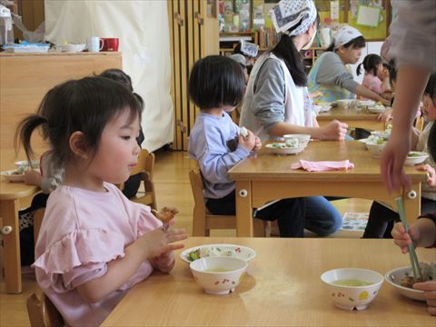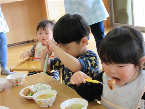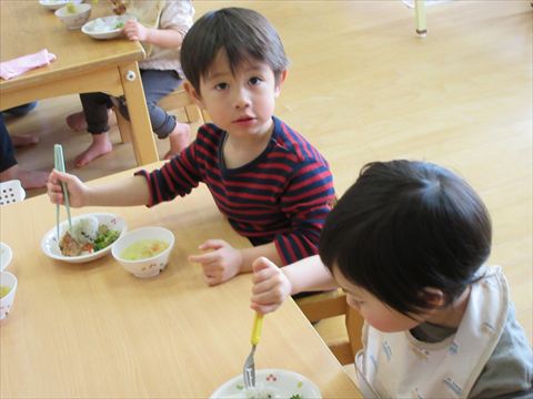 今日は、給食を皆で食べます。🍴