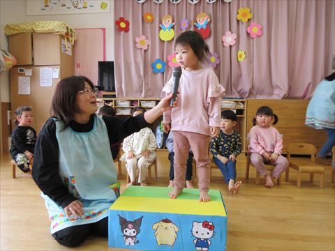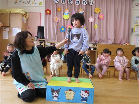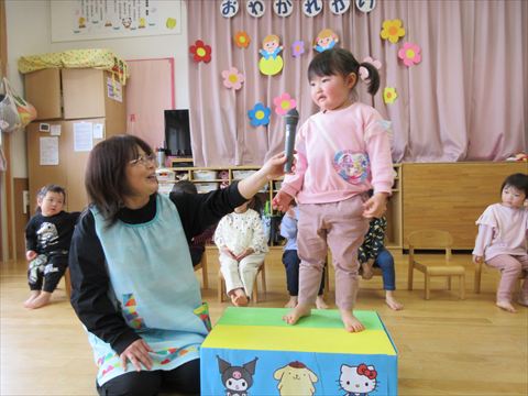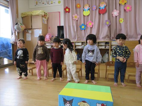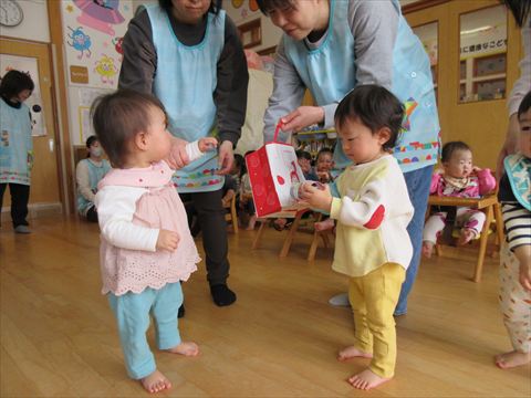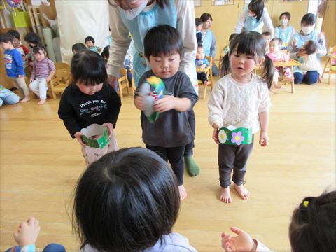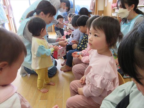 今日は、卒園するぱんだ組さんとのお別れ会です。