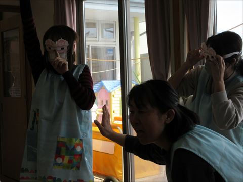 先生達が、不思議なメガネとマスクで登場~