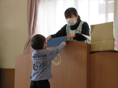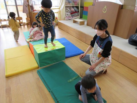 2026.03.16 今日のかめら(^^♪ ひよこ組さん、色々な玩具で遊べるようになりました。 たくさんの玩具楽しいね~ うさぎ組さん、お家ごっこ♬ 段ボールハウスは、やっぱりワクワクします。💓 ぱんだ組さん、トンネルくぐり・・・ げんきっこジムで思いっきり体を動かしました。 卒園式の練習も進んでいます。 もうすでに上手です。 卒園式を来週に控え本格的に練習が始まりました。 無理のないように進めています。 季節柄か鼻水の出るお子さんが多くなっています。 体調管理お願いします。