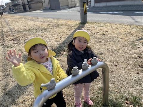 2026.03.24 今日のかめら(^^♪ ぱんだ組さん、みんなで行く最後のお散歩です。 通称【小鳥の公園】🕊️ おや・・・【魔法の杖??】 お天気の良いお散歩日和です。 うさぎ組さんも、園庭に出てきました。🐰 陽ざしが暖かいです。🌞 ひよこ組さんも、お部屋から出てきましたよ~🐣 ひよこ組さんもお外で歩けるお友だちが増えてきました。 成長を感じます。😊 風は、少し冷たいものの春の陽ざしが 今日も感じられました。 良い季節ですね。 明日もお待ちしております。