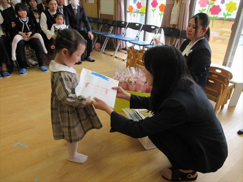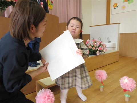 保育証書とプレゼントと「ありがとう。」の言葉を
